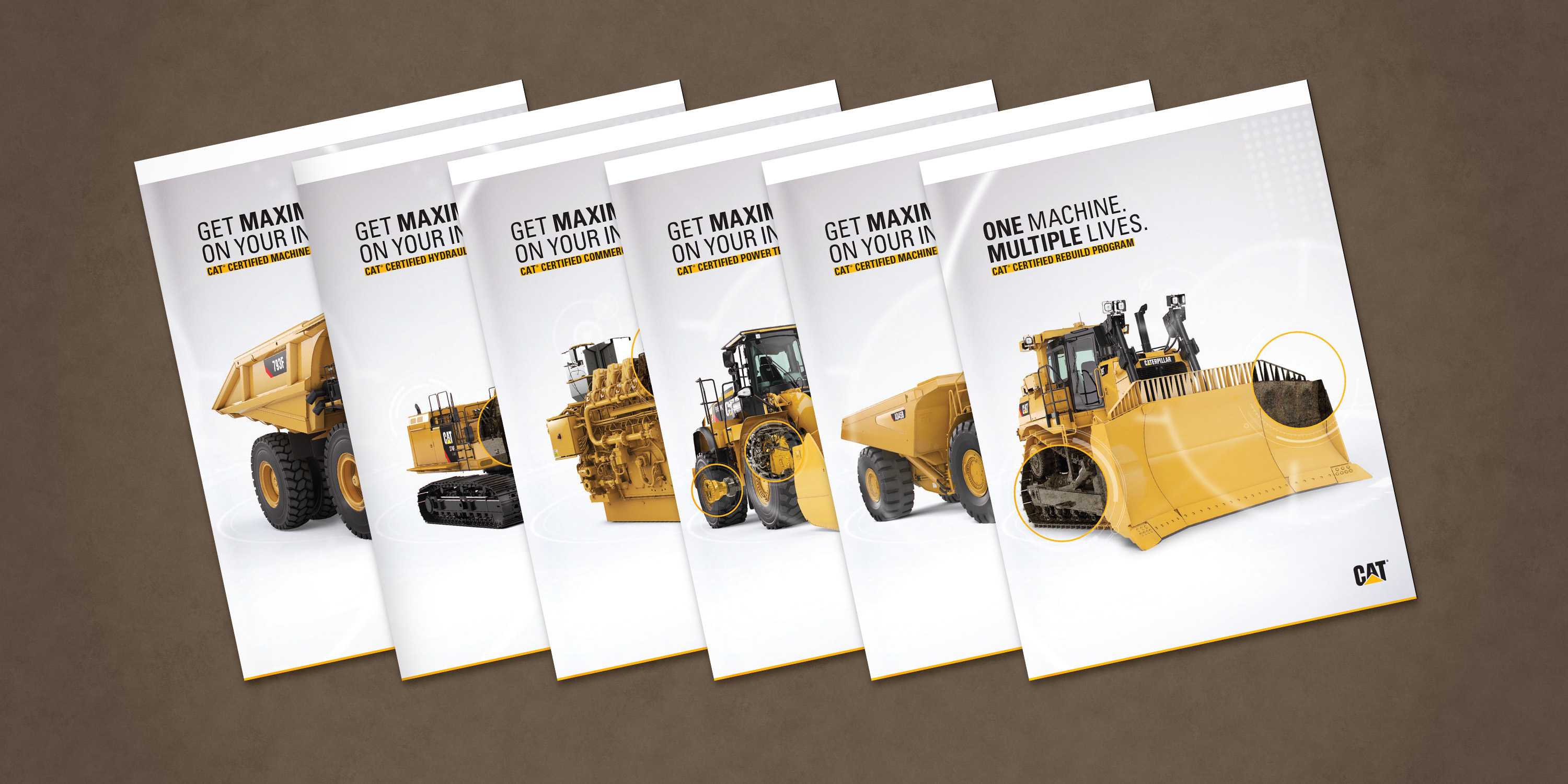 General and 35th anniversary marketing materials for the Cat Certified Rebuild Program, which offers customers a chance to rebuild their currently-owned, end-of-life machines for less cost than buying new.